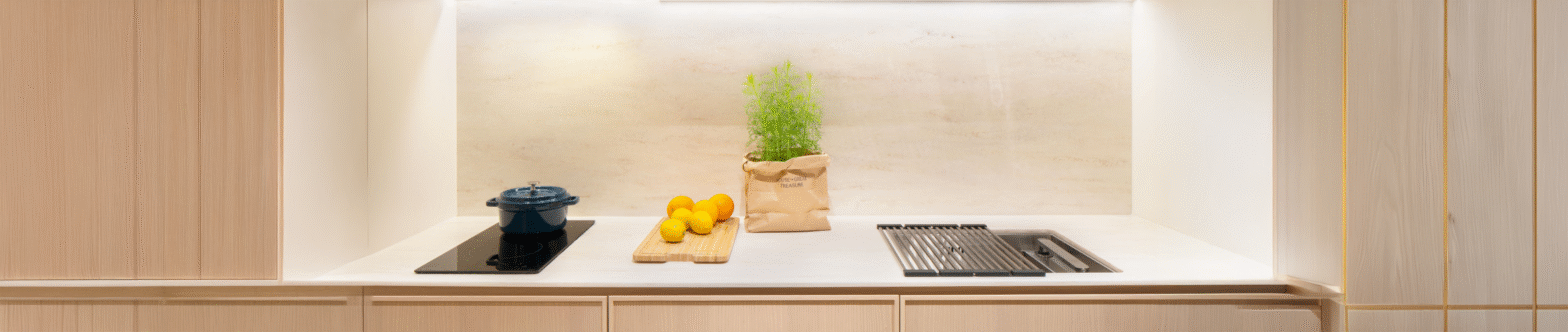 A: Pull out the telescopic front panel to activate the hood. Push it back when not in use to save space and maintain a sleek kitchen look.